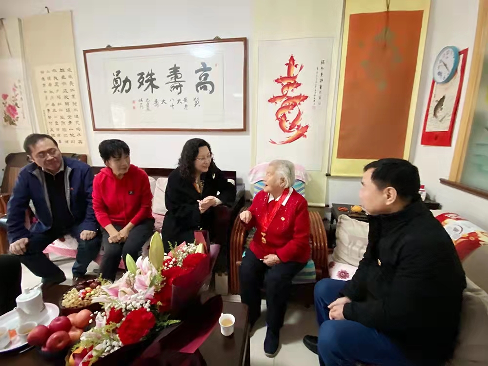隨后黃蓓一行來到元首集團(tuán)離休老干部、老黨員黃顯和家中,送上鮮花和慰問金,致以佳節(jié)祝福,與黃顯和老人座談交流。93歲的黃顯和老人年輕時在湖南讀書期間就接受革命洗禮,秘密加入學(xué)校進(jìn)步社團(tuán),在“白色恐怖”下開展愛國運(yùn)動,轉(zhuǎn)業(yè)后在濟(jì)南針織廠辛勤耕耘近十八載,1982年4月離休,是名副其實(shí)的巾幗模范代表。黃蓓代表集團(tuán)黨委感謝她為黨和企業(yè)做出的突出貢獻(xiàn),對其在革命年代的英勇事跡表示崇高敬意,表示產(chǎn)發(fā)集團(tuán)要傳承好老一輩不懼艱辛、敢于奮斗、無私奉獻(xiàn)的精神,凝心聚力、接續(xù)奮斗。